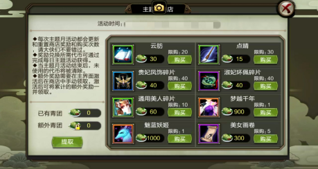 玩家可在元宝分页和畅销分页中购买主题月门票【纸鸢】,【行囊】、【云肪】、【点睛】、【石泓】等道具。【聚沙成塔活动敞开 新同伴新坐骑都可兑换】。