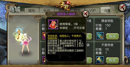 “嬌俏鐘靈”以及待字閨中的“刁蠻阿紫”更能使妳的战斗力曝表,雄霸壹方!少俠們,妳們還在為集不齊佳人,战力太低而發愁嗎?還在為每天刷副本爆碎片而辛勞嗎?溫婉佳人福袋就是妳的不貳之選!“窈窕淑女,君子好逑”福袋限時上架,抓緊時間為妳念念不忘的佳人斗爭吧!
