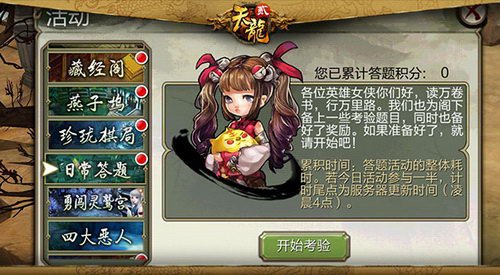最后依据答对的题数,发放对应的礼包奖赏。留意:全部答错没有礼包奖赏,所以,各位少侠最少要答对1题哦。所有成绩优异的考生,都会在“风云榜”。