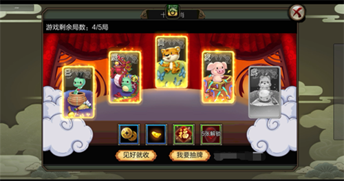 今天具体给各位说明一下属相牌的玩法,首要玩家等级需要≥60级,每日每个人只能完成五局游戏,每天有三次免费抽牌的时机,第四次抽卡消耗10绑元。 后续每次抽卡需比前一次多消耗10绑元,各位玩家经过主题活动月界面,点击十二属相,玩家点击开始游戏后,随机抽出五张属相牌牌变成灰色作为底牌。 点击【我要抽牌】,就可从12张属相牌中随机翻出五张属相牌,若有跟底牌一致的牌,则底牌会被填满色彩视作翻牌成功,与底牌不一样的牌则消失。 最终根据成功翻牌的数量解锁奖赏,若玩家已经满足自己解锁的奖赏,则点击【见好就收】视作本次游戏完毕,即可收取成功翻牌数量所对应的奖赏。 跟着彩蛋的晋级,下面就是本次新春主题月兑换商铺的具体内容,各位能够好好打量打量,给自己定个小目标,先弄它个春节永久坐骑!
